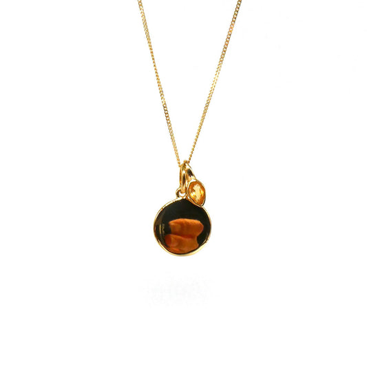 Gold disc pendant with a citrine charm for a November's Birthday.