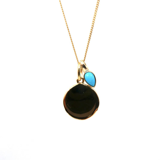 Gold Disc pendant with a Turquoise charm for a December Birthday.