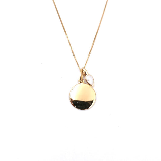 Gold Disc pendant with a Pearl charm for a June Birthday