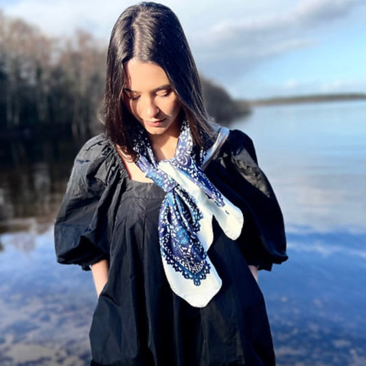 Silk Twill scarf 'Kathleen' Black, Slate & Pearl.