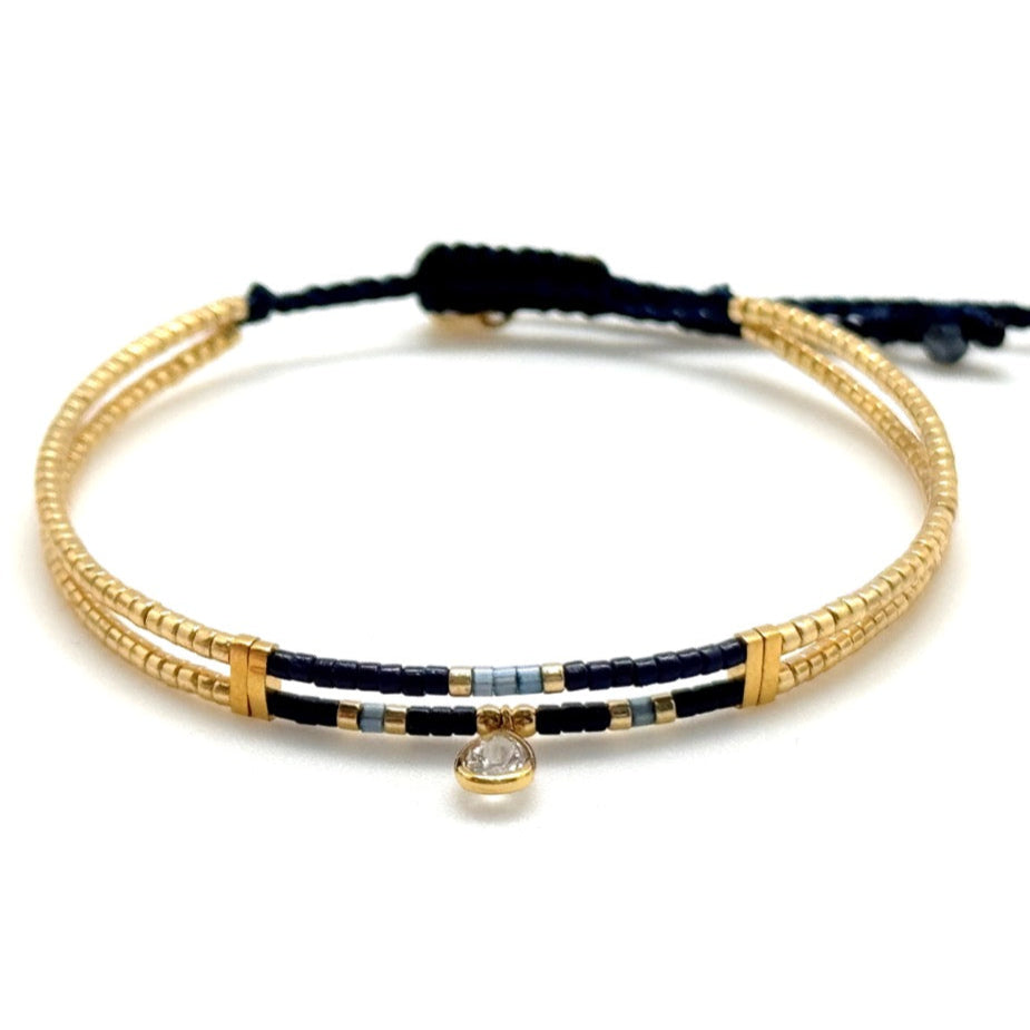 A double Bracelet with a crystal pear drop, pretty as a stand alone piece.