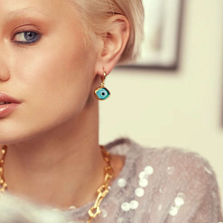 Bronte Blue Glass Evil Eye Huggie Earrings