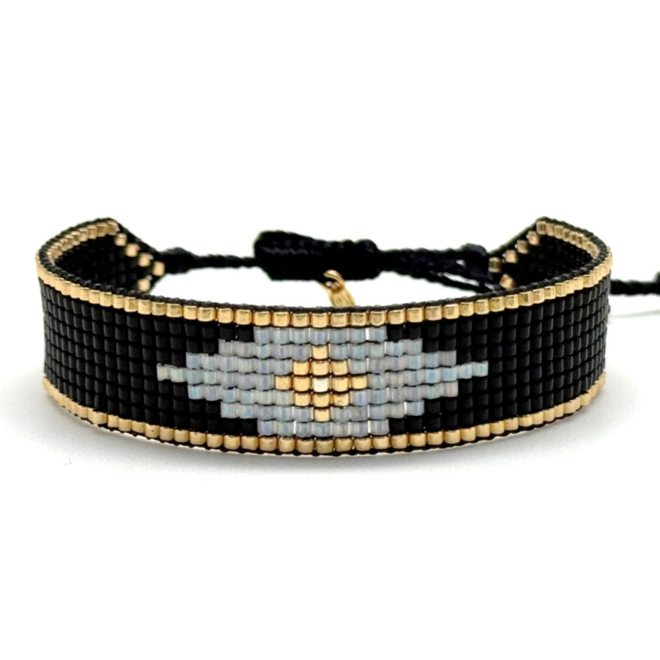 Hand woven Bracelet by Suenia Zurich with Miyuki Beads. Cord opening.