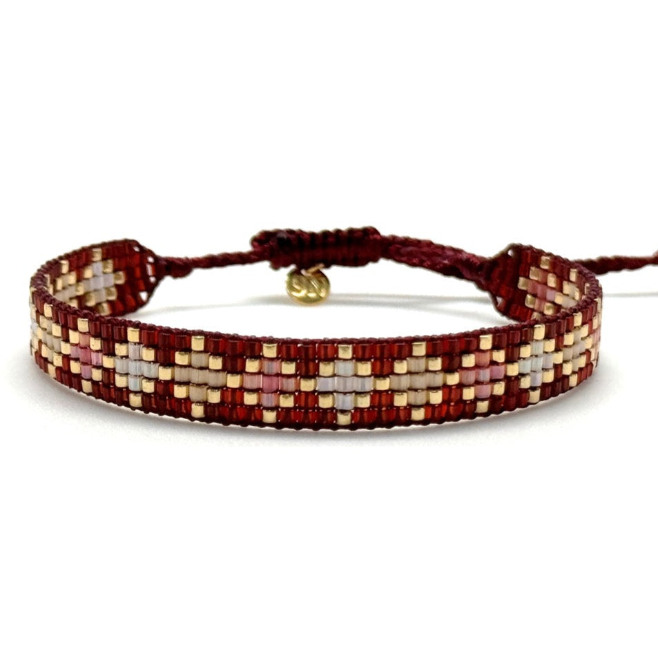 Number thirty nine is a slim bracelet perfect for stacking or solo, pattern repeats in pink and neutral tones.