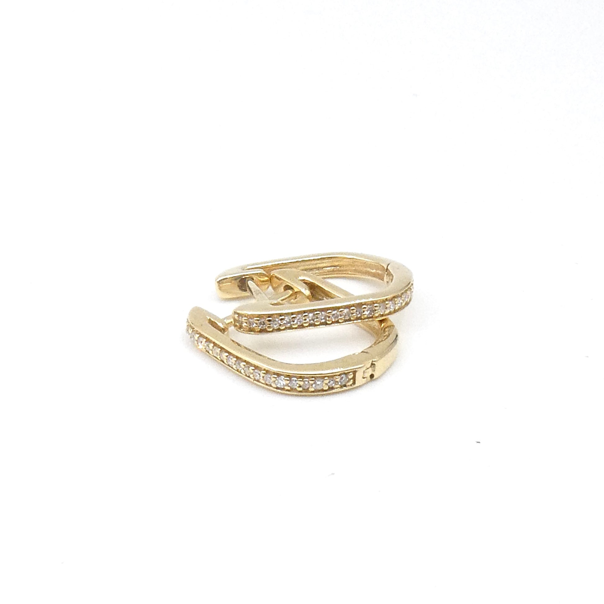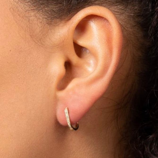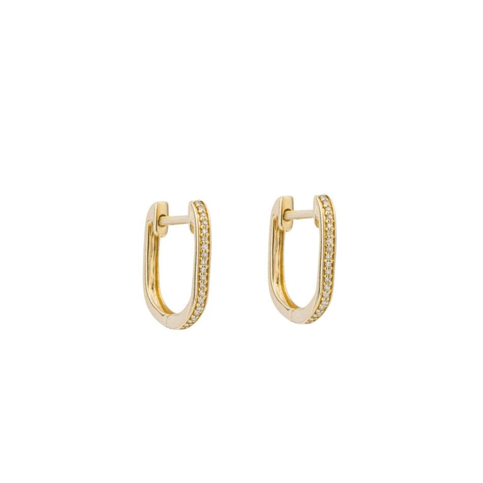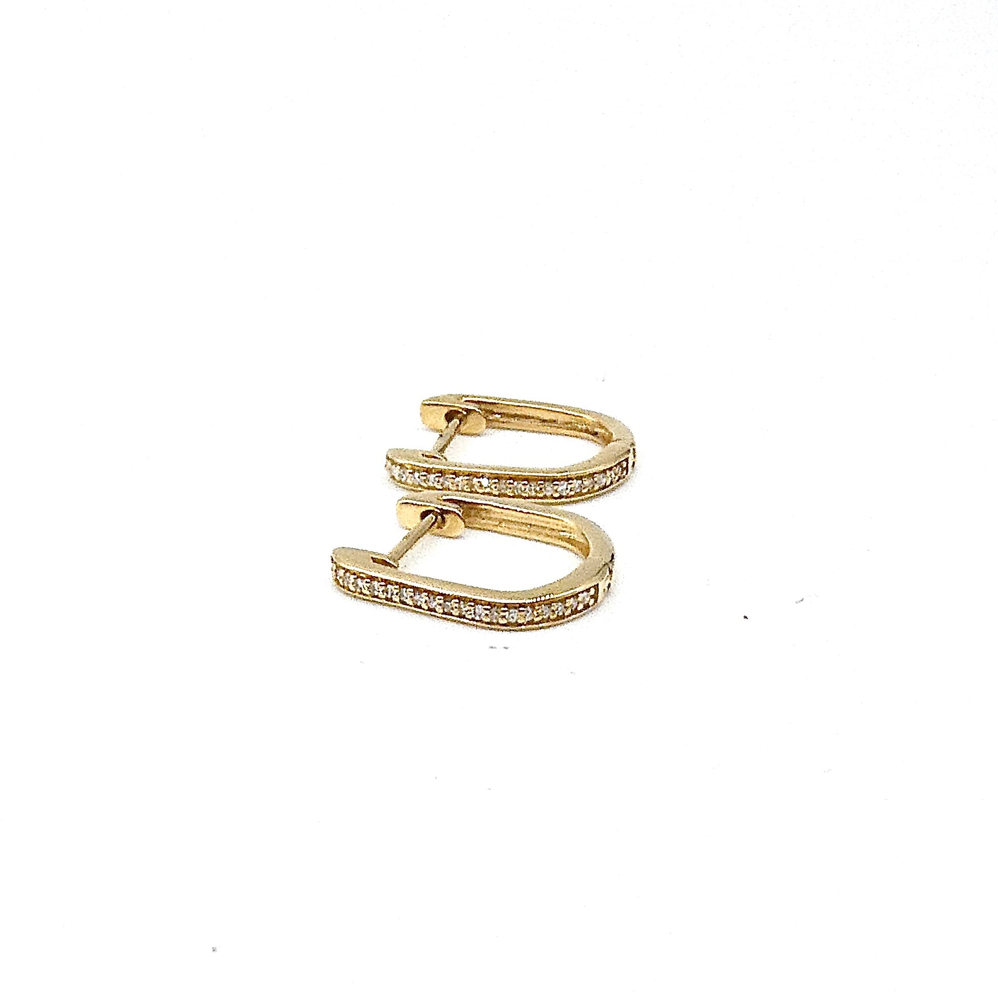 A minimalist wearable pair of rectangular Huggies set with pave diamonds.