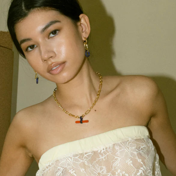 Lampwork glass handmade by local artisans between Barcelona and the UK. 18kt gold plated brass mixed link chain.