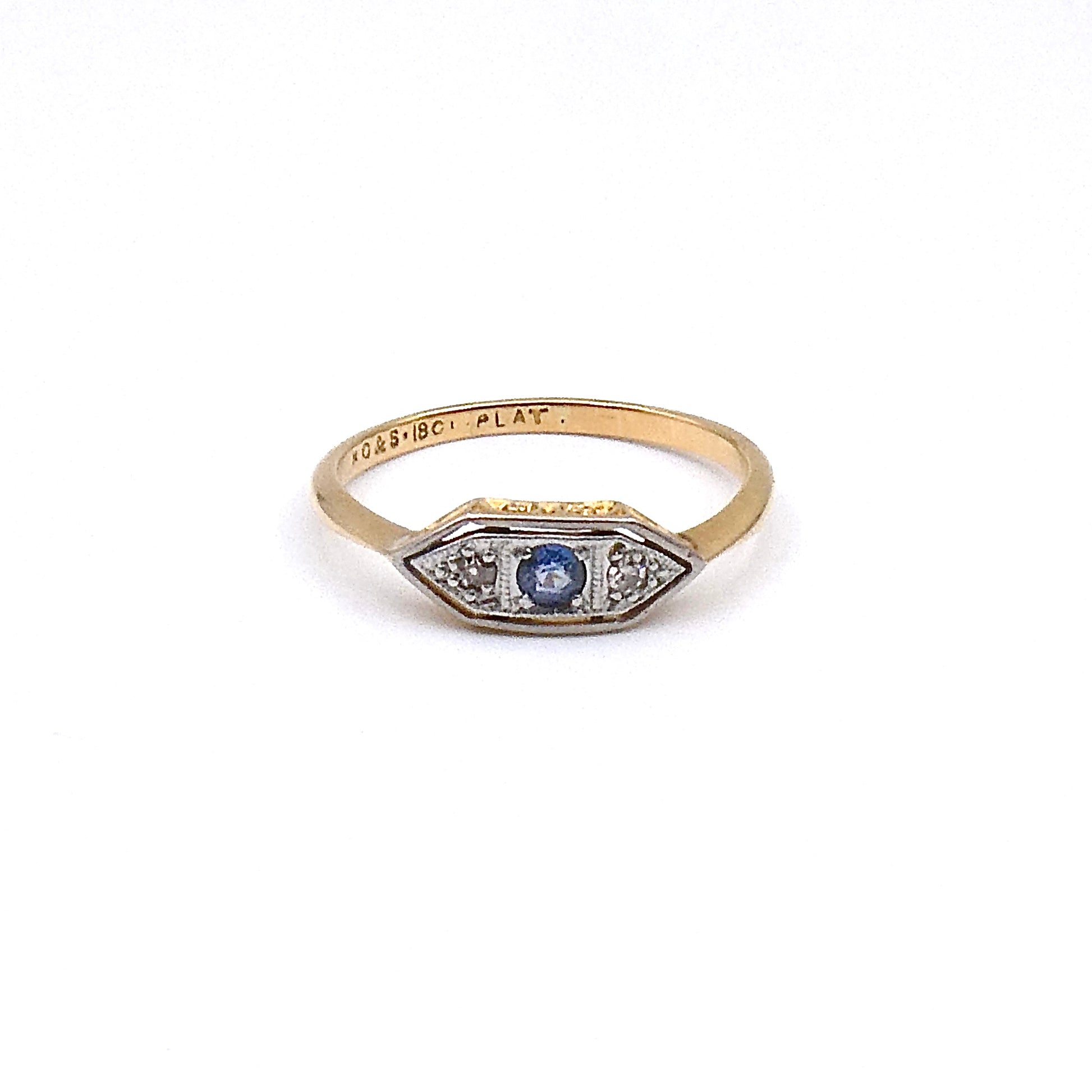 MIni art deco Sapphire and diamond ring 18ct and platinum